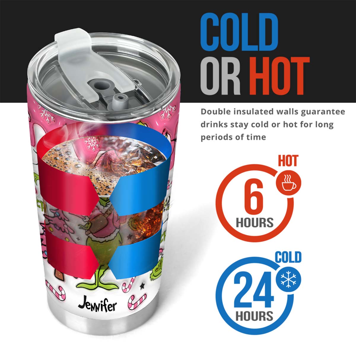 Le Grinch à l'intérieur - Gobelet de Noël personnalisé avec étole