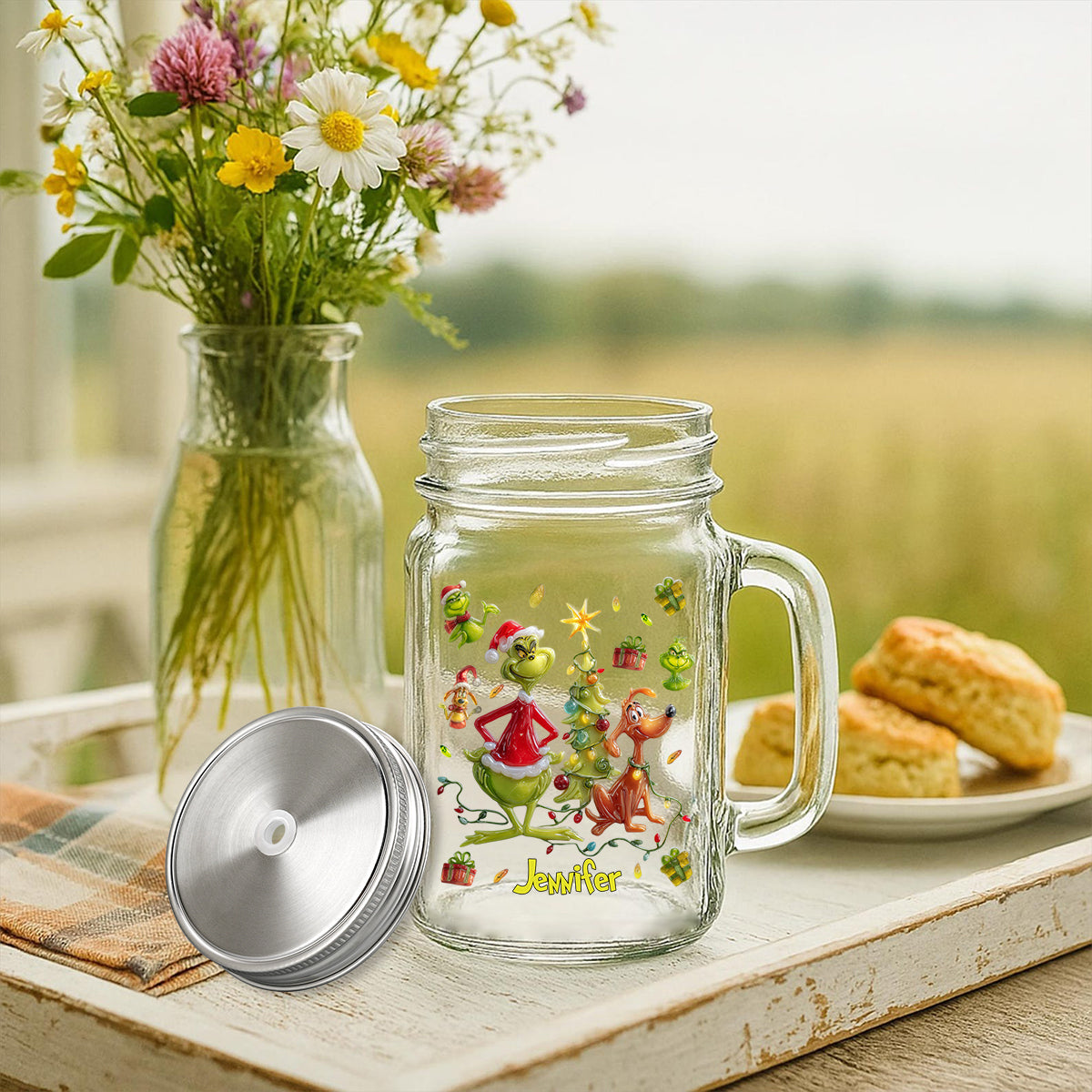 Joyeux Noël Vert - Étole de Noël personnalisée pour bocal Mason