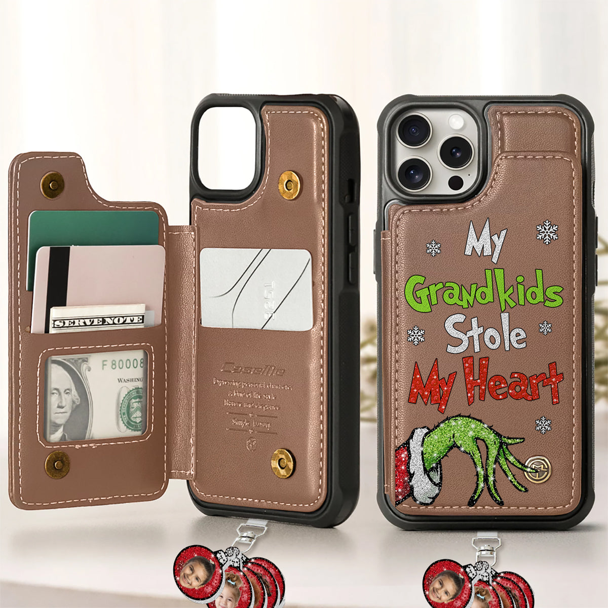 Mes petits-enfants... ont volé mon cœur - Portefeuille de téléphone personnalisé « Fuite de Noël » avec breloques