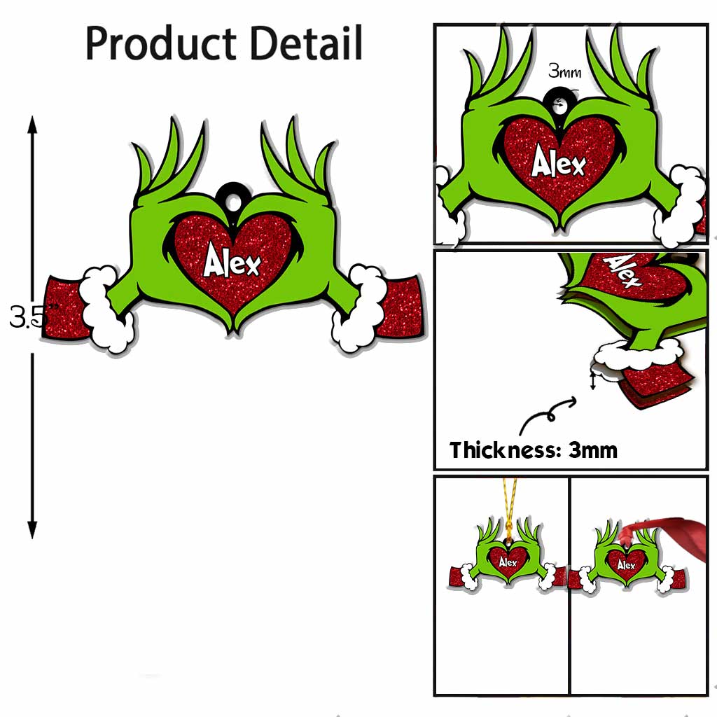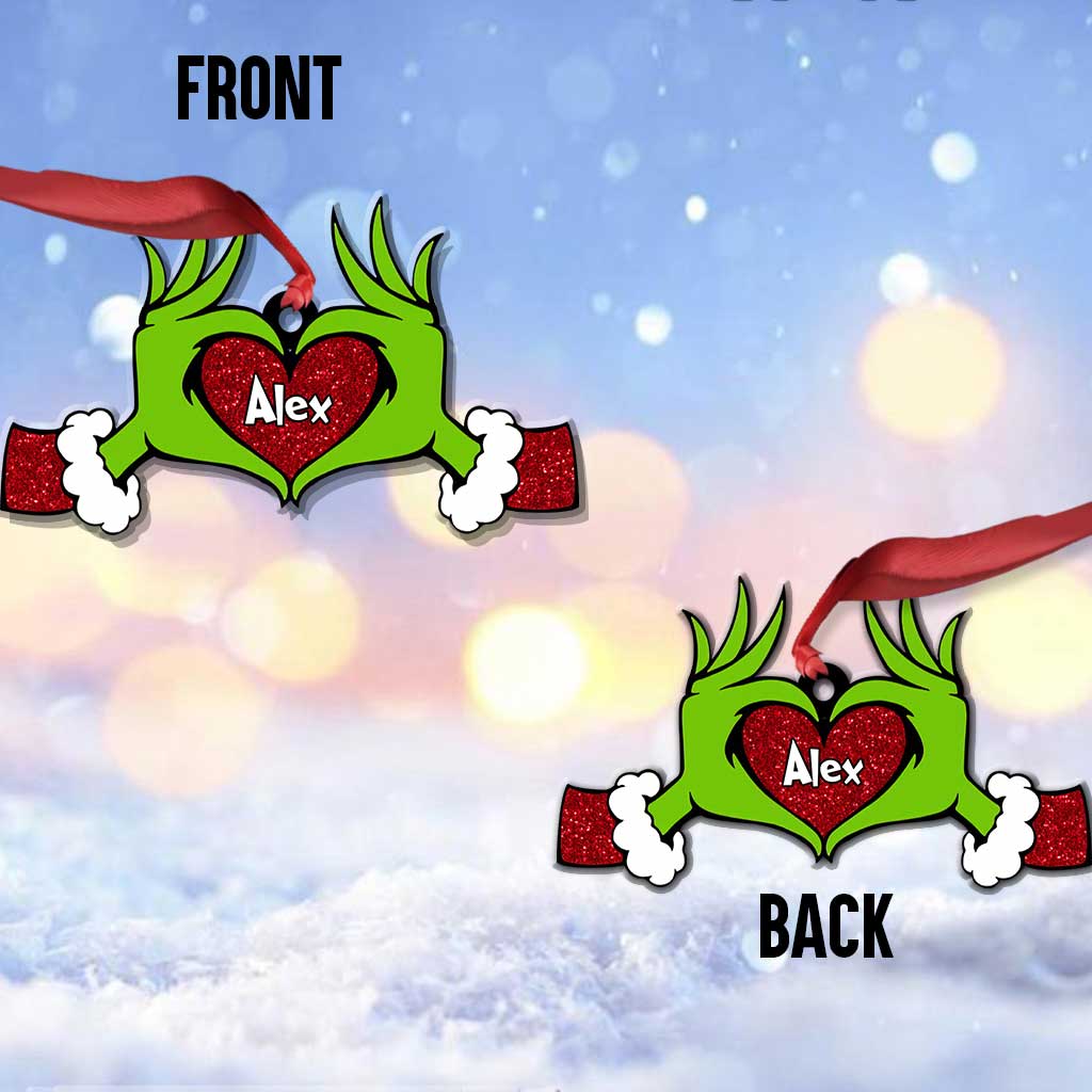 Green Heart Hand - Personalized Christmas Stole Christmas Ornament With Faux Glitter Pattern Printed (Printed On Both Sides)