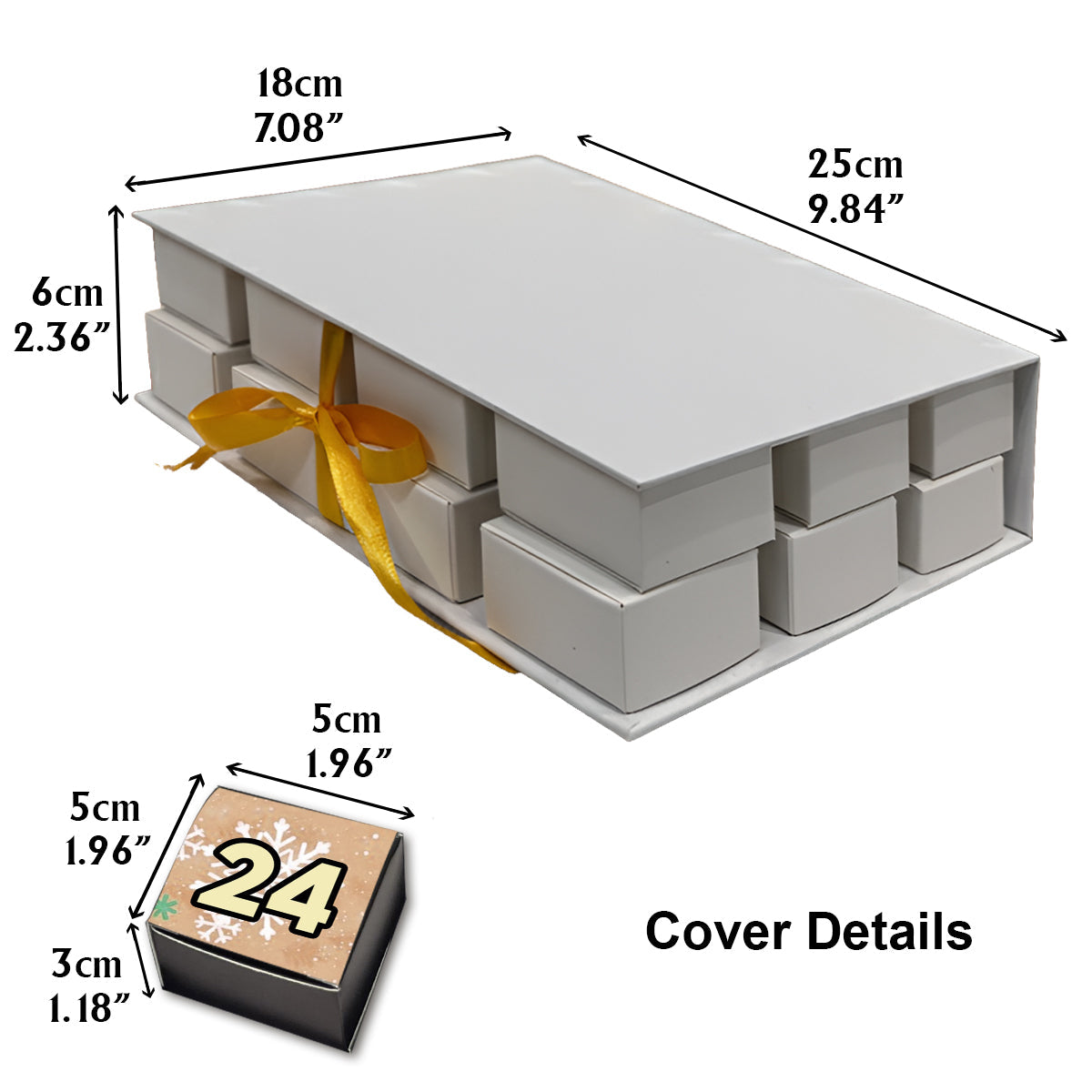 Celebrate the countdown to Christmas with this beautifully designed Advent Calendar Box, featuring 24 mini drawers to open each day. Made with high-quality printing, this calendar doubles as a festive décor piece and a memorable gift.