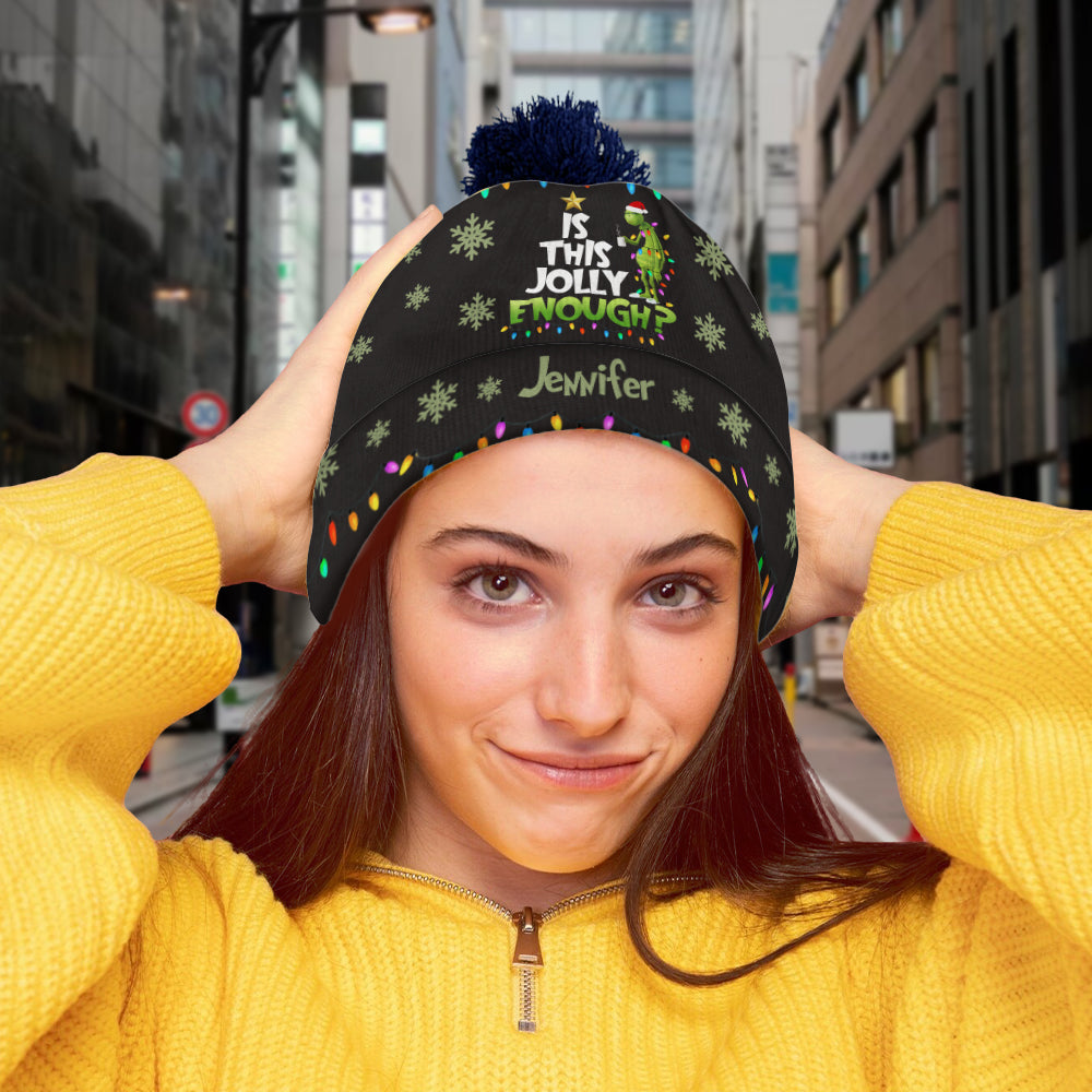 Is This Jolly Enough - Personalized Stole Christmas Beanie Hat