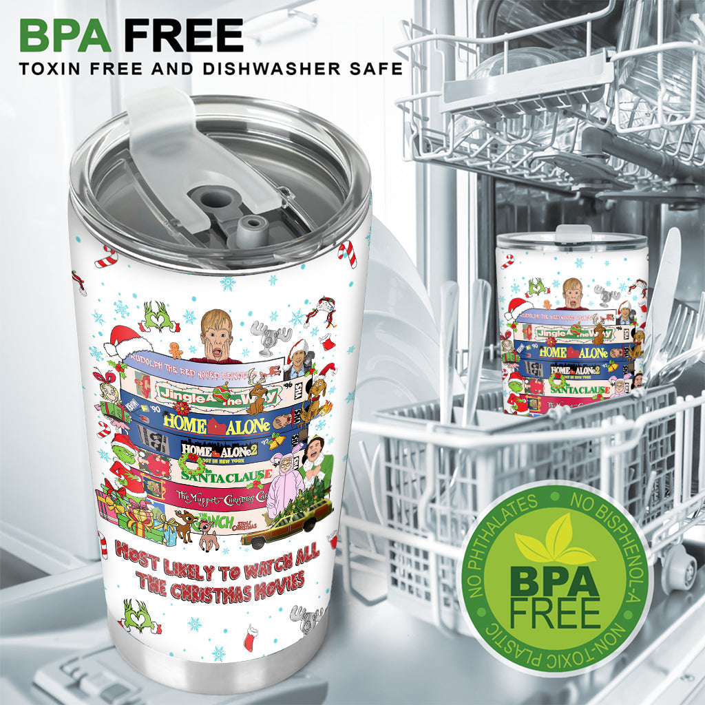 Most Likely To Watch All The Christmas Movies - Personalized Christmas Tumbler
